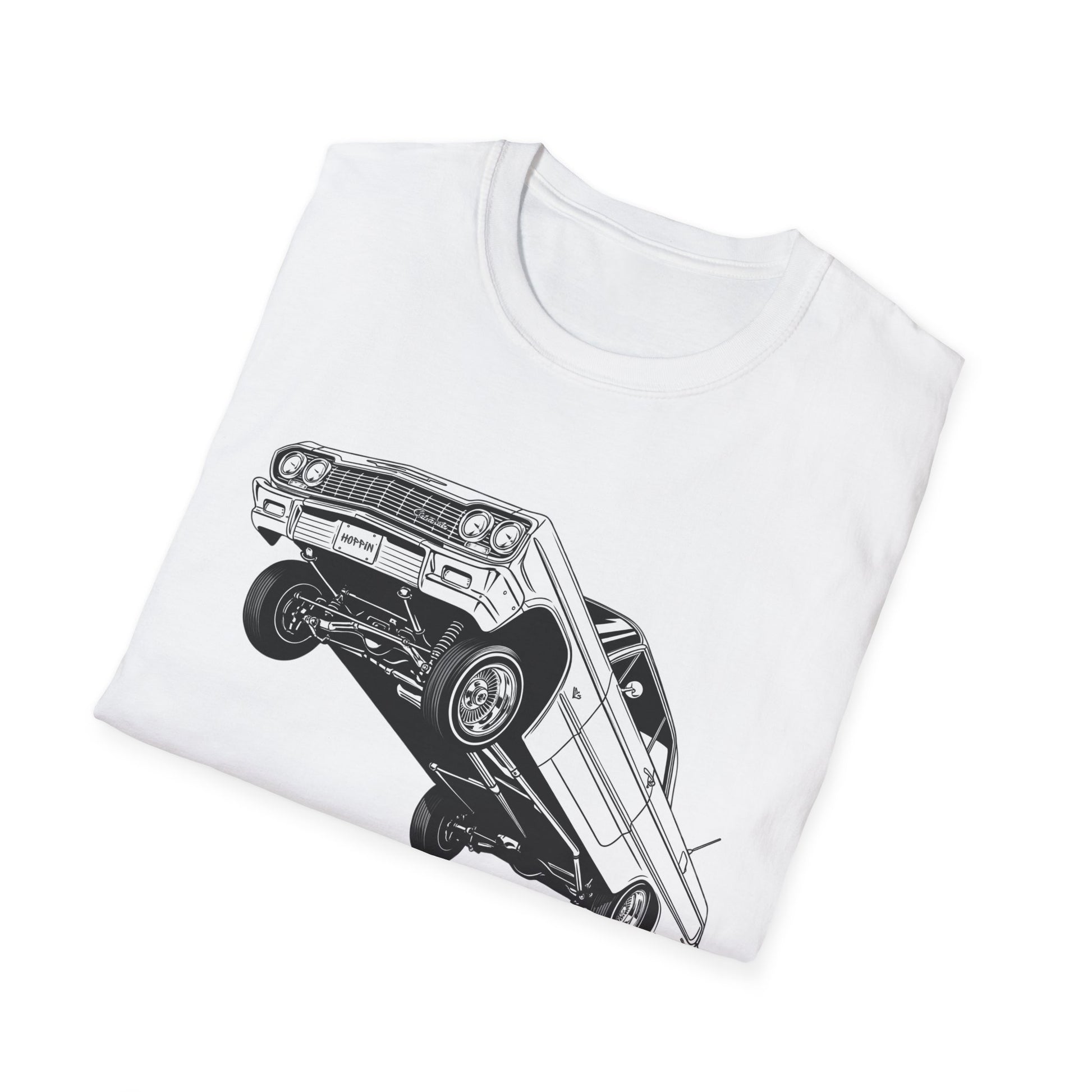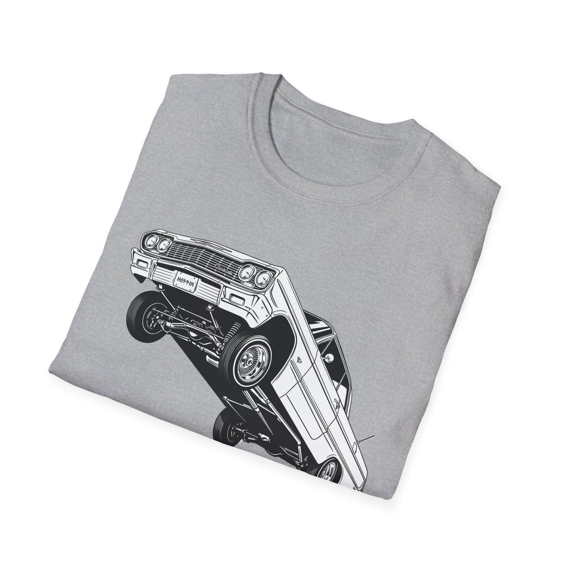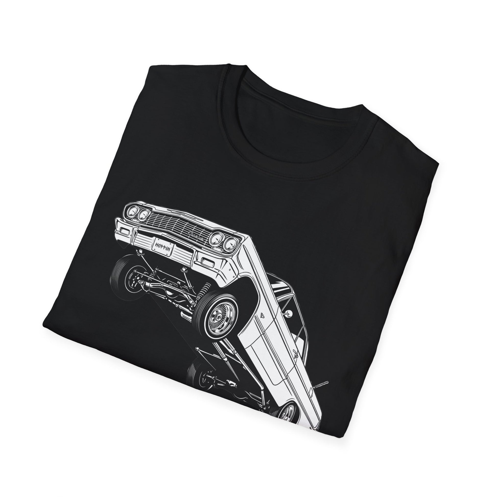 1964 Chevy Impala Hydraulics Lowrider Ink Drawing T-Shirt - Old School Hip Hop Cholo Art Tee Design - Chicano Car Club Graphic Tee