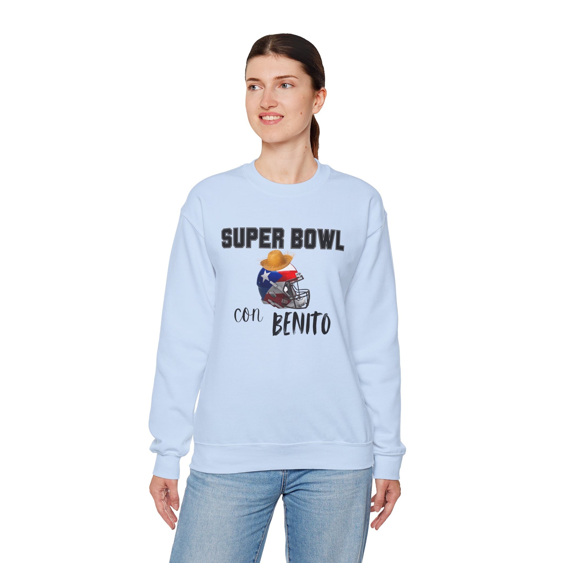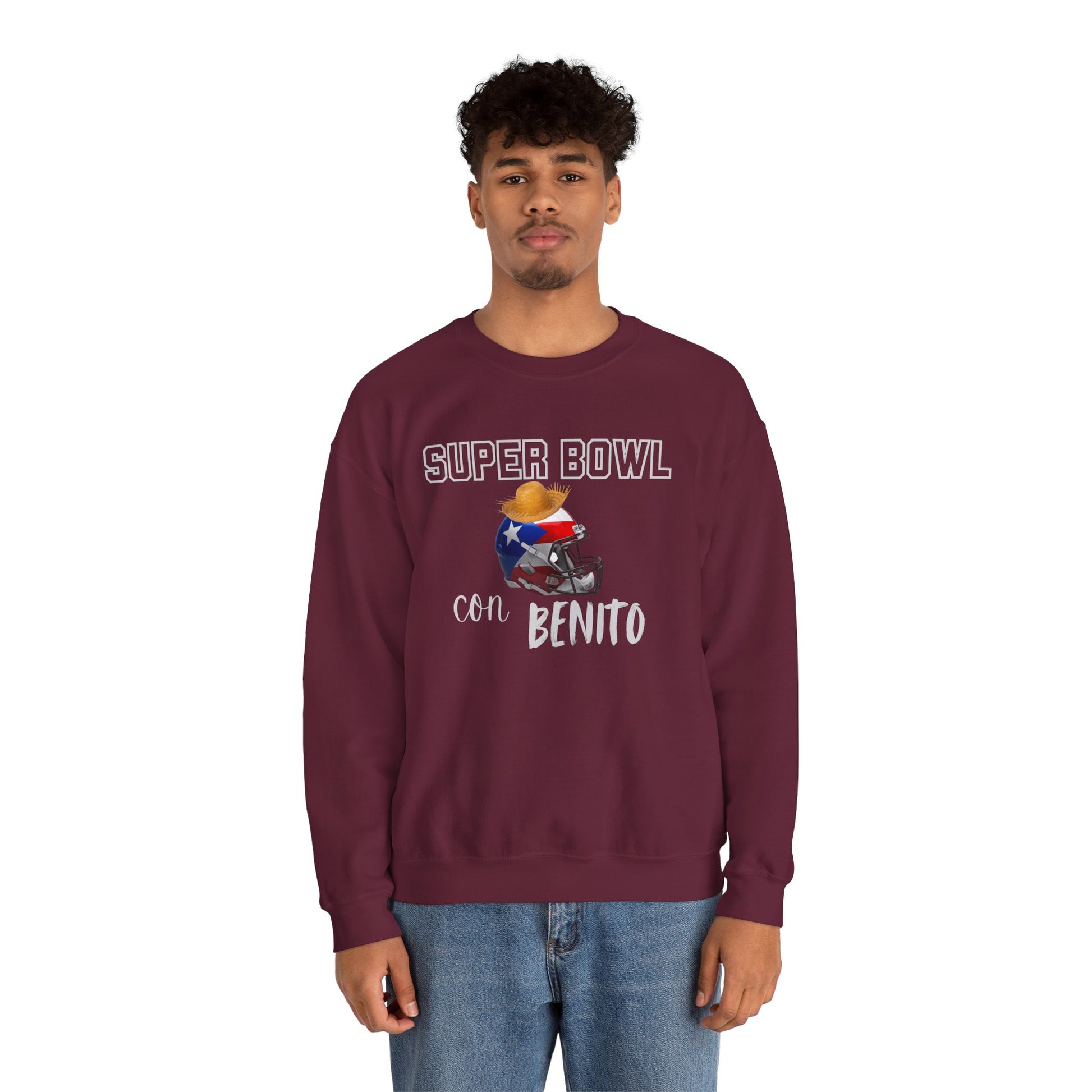 Show your love for the biggest halftime show of the year with this Benito Bowl Sweatshirt! Elevate your casual wardrobe with this Unisex Heavy Blend™ Crewneck Sweatshirt, perfect for cozy days and relaxed nights. Wrap yourself in comfort with its classic fit and soft, cotton-polyester blend. It's an ideal choice for gatherings with friends or family, especially during the Super Bowl or any laid-back celebration. This sweatshirt embodies warmth and community, making it a go-to piece for sports enthusiasts and casual wear lovers alike. Gift it to loved ones for holidays or simply treat yourself to a stylish, comfortable staple that fits seamlessly into your lifestyle.