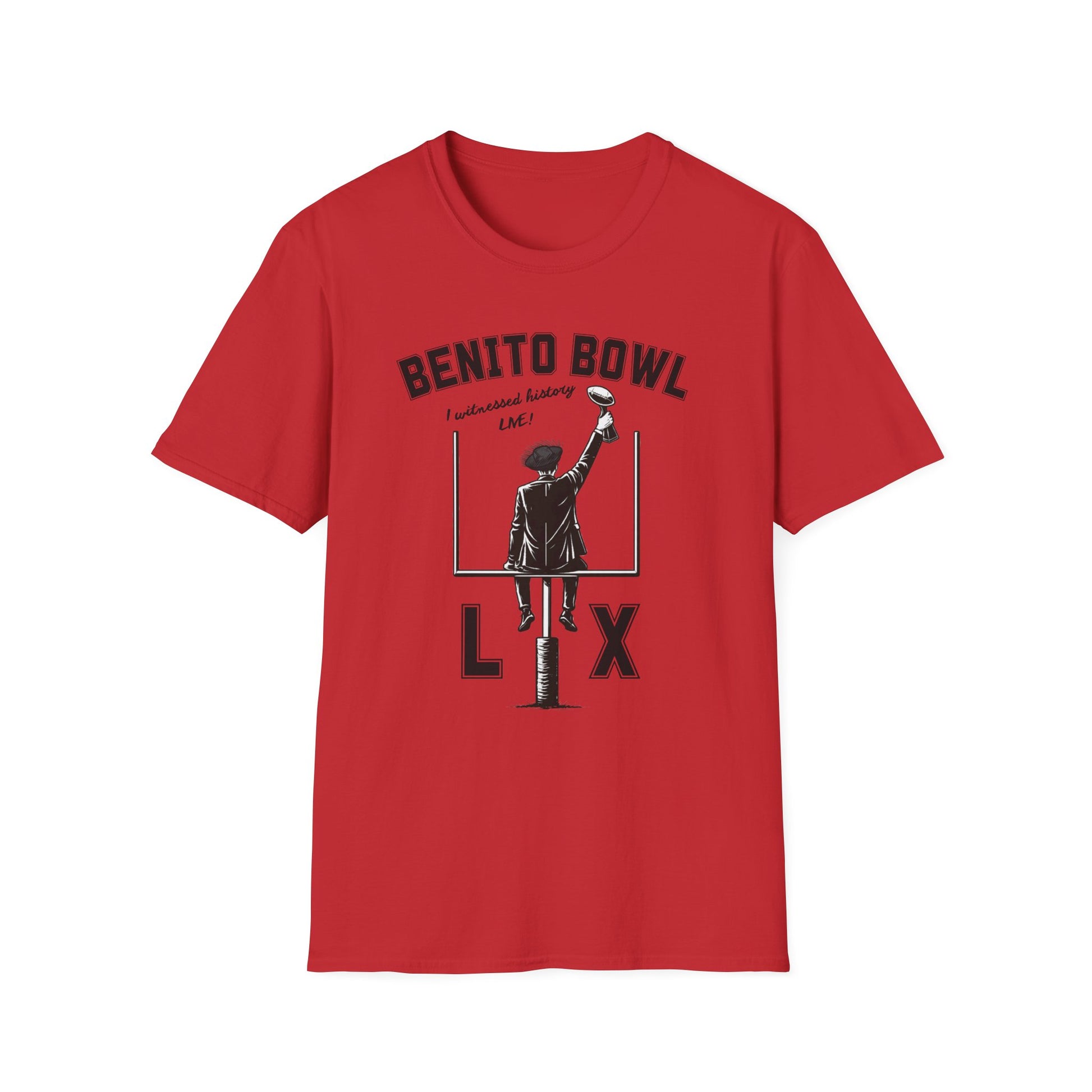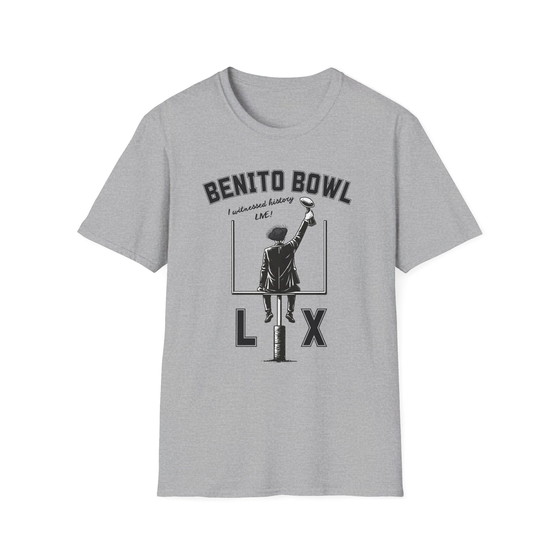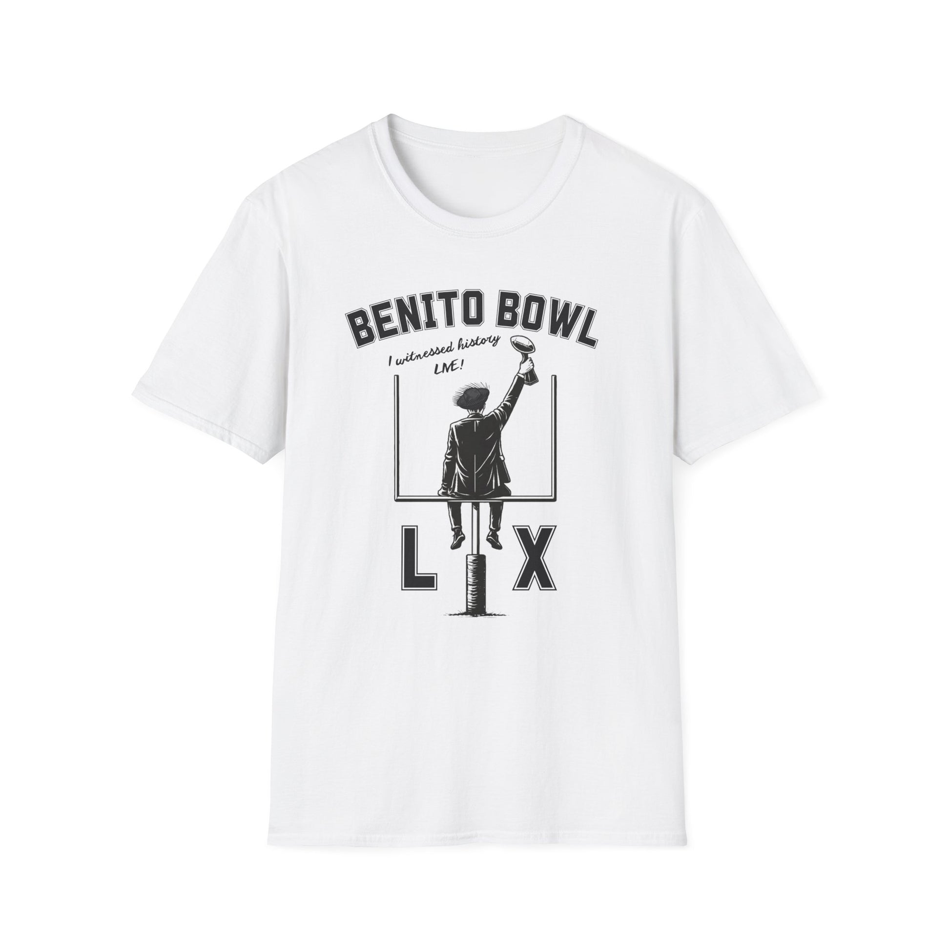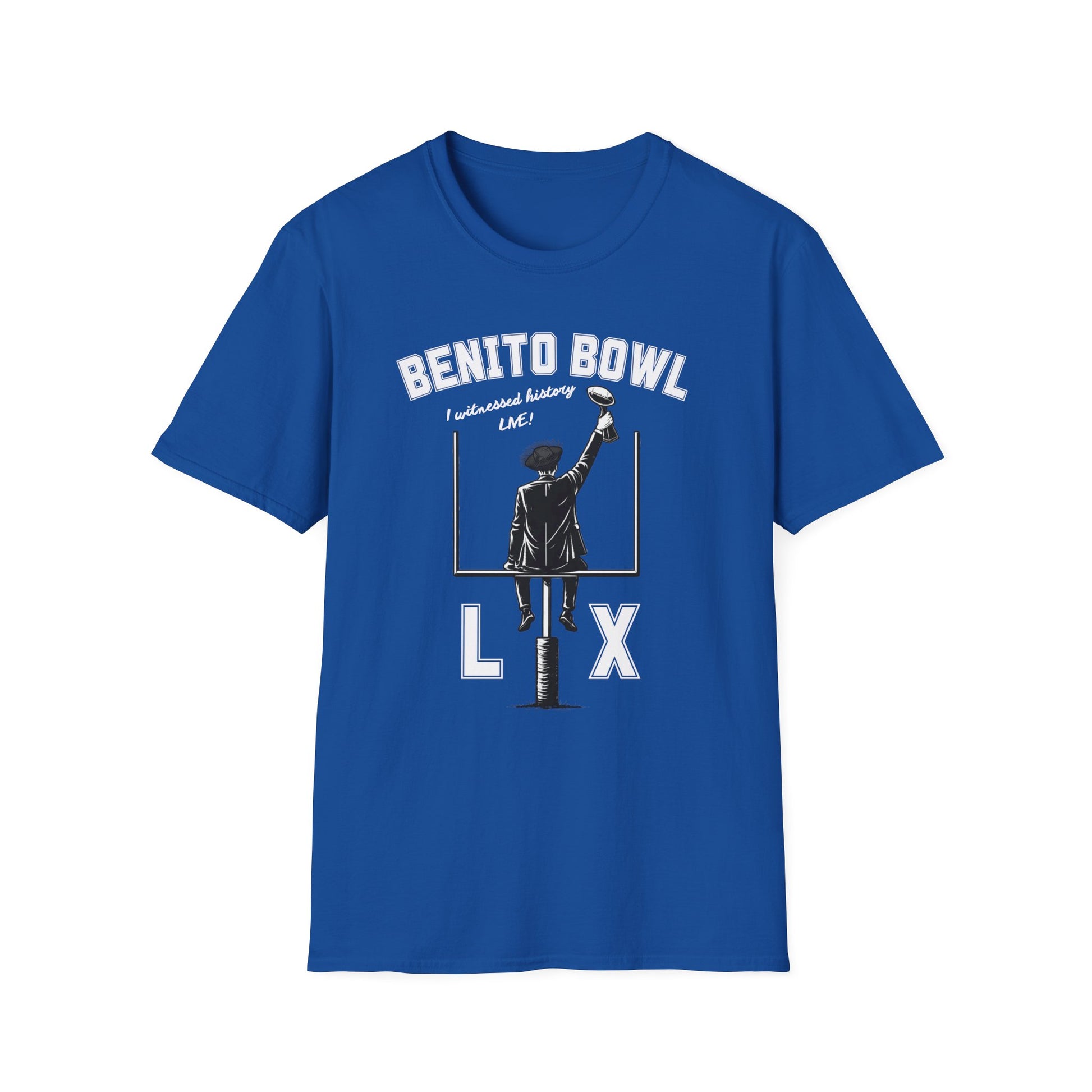 Witness history. Remember the moment. The Benito Bowl LX tee captures a once-in-a-lifetime football moment with a bold, minimalist graphic designed for fans who watched it happen live. Featuring a powerful black-and-white illustration symbolizing victory, legacy, and culture, this shirt is perfect for post-game celebrations, collectors, and true fans of historic nights.