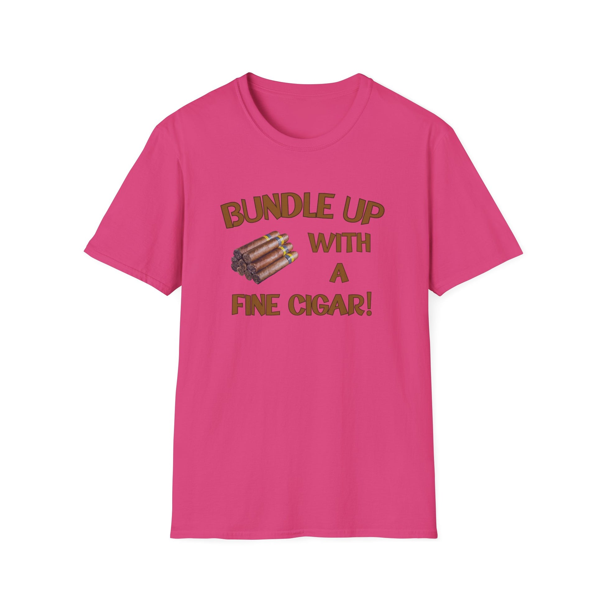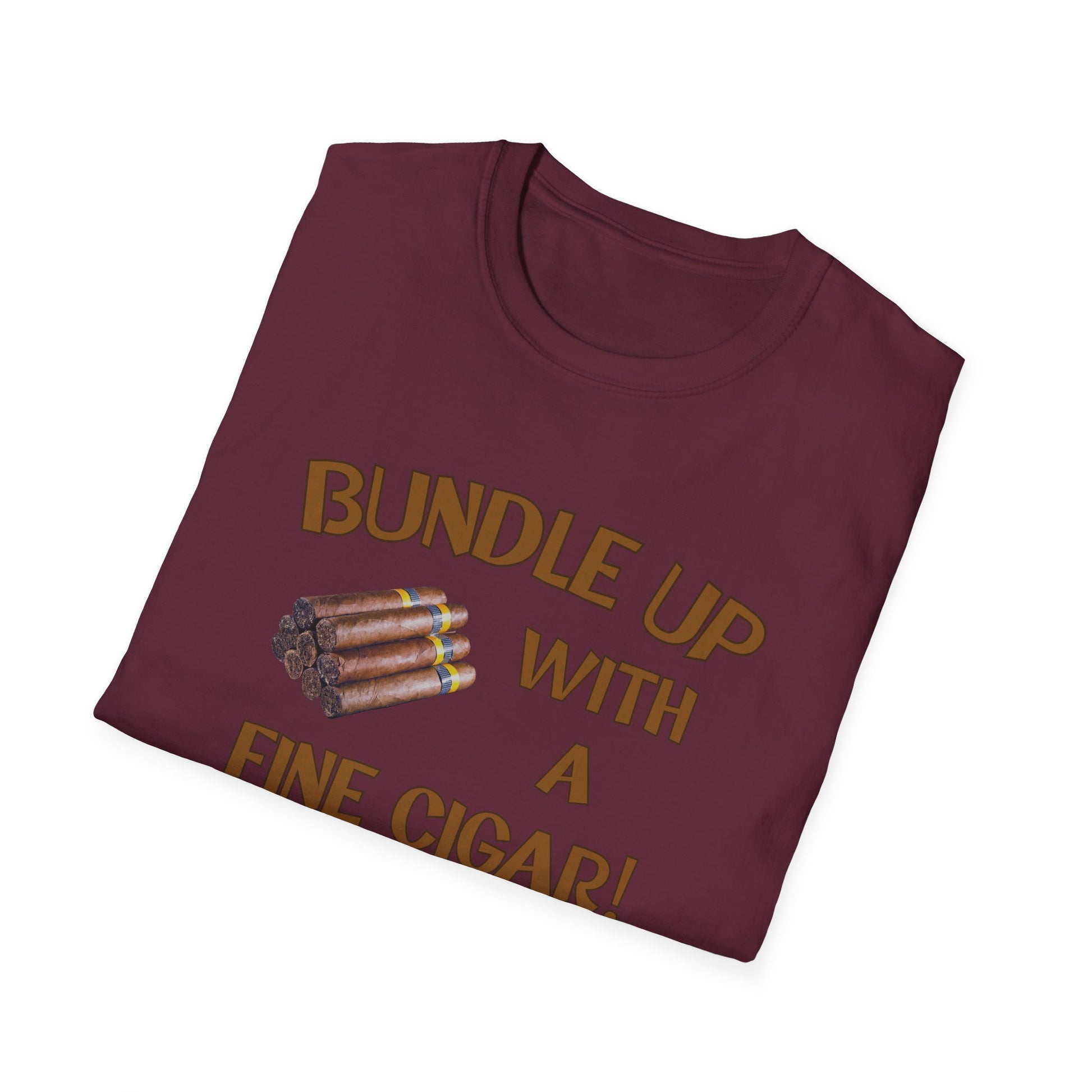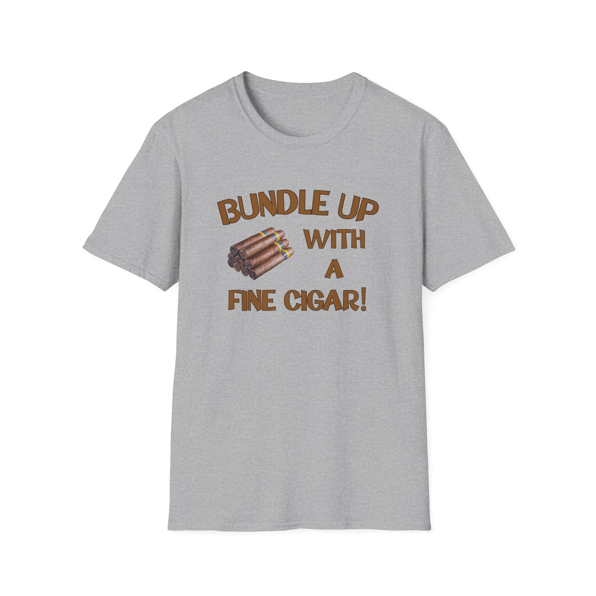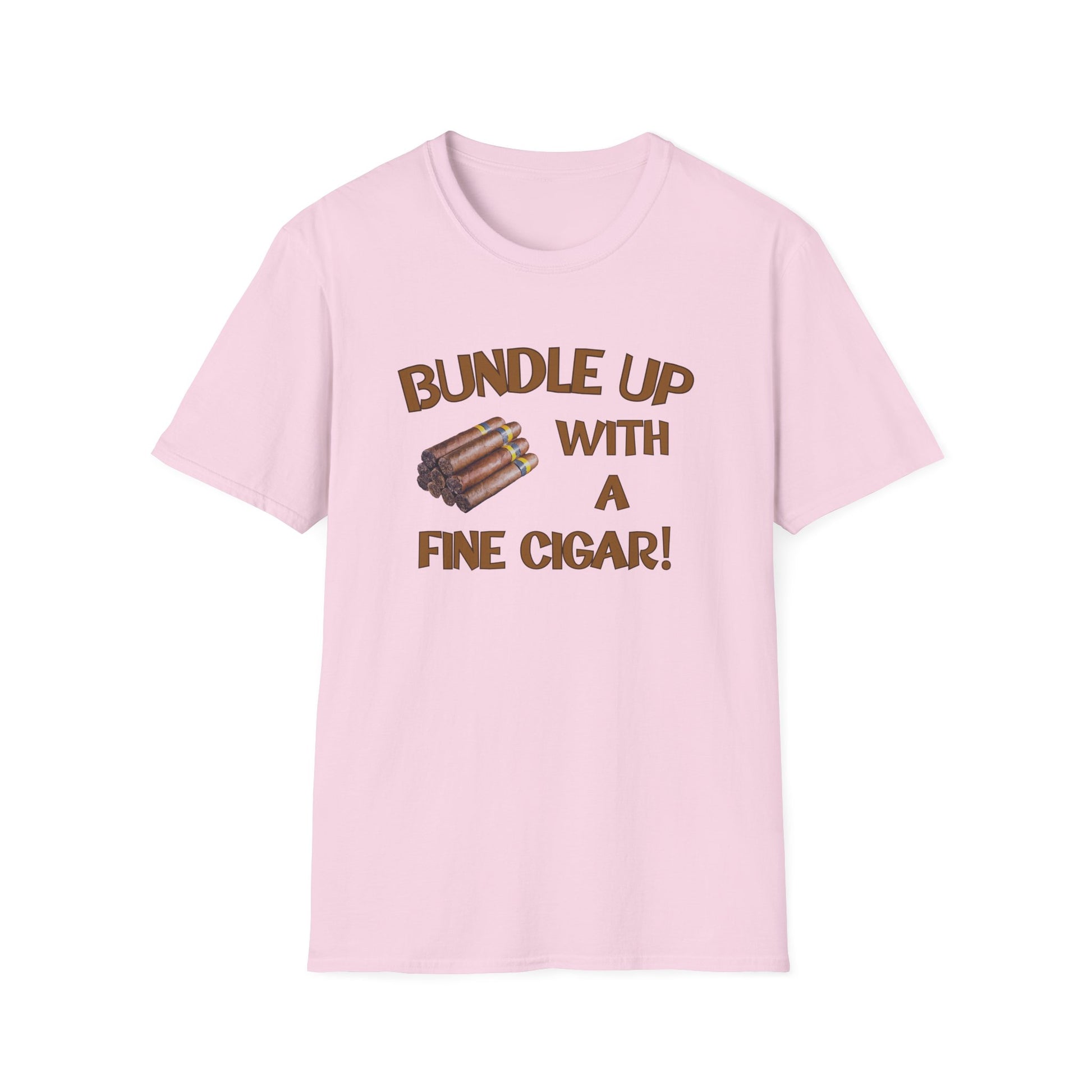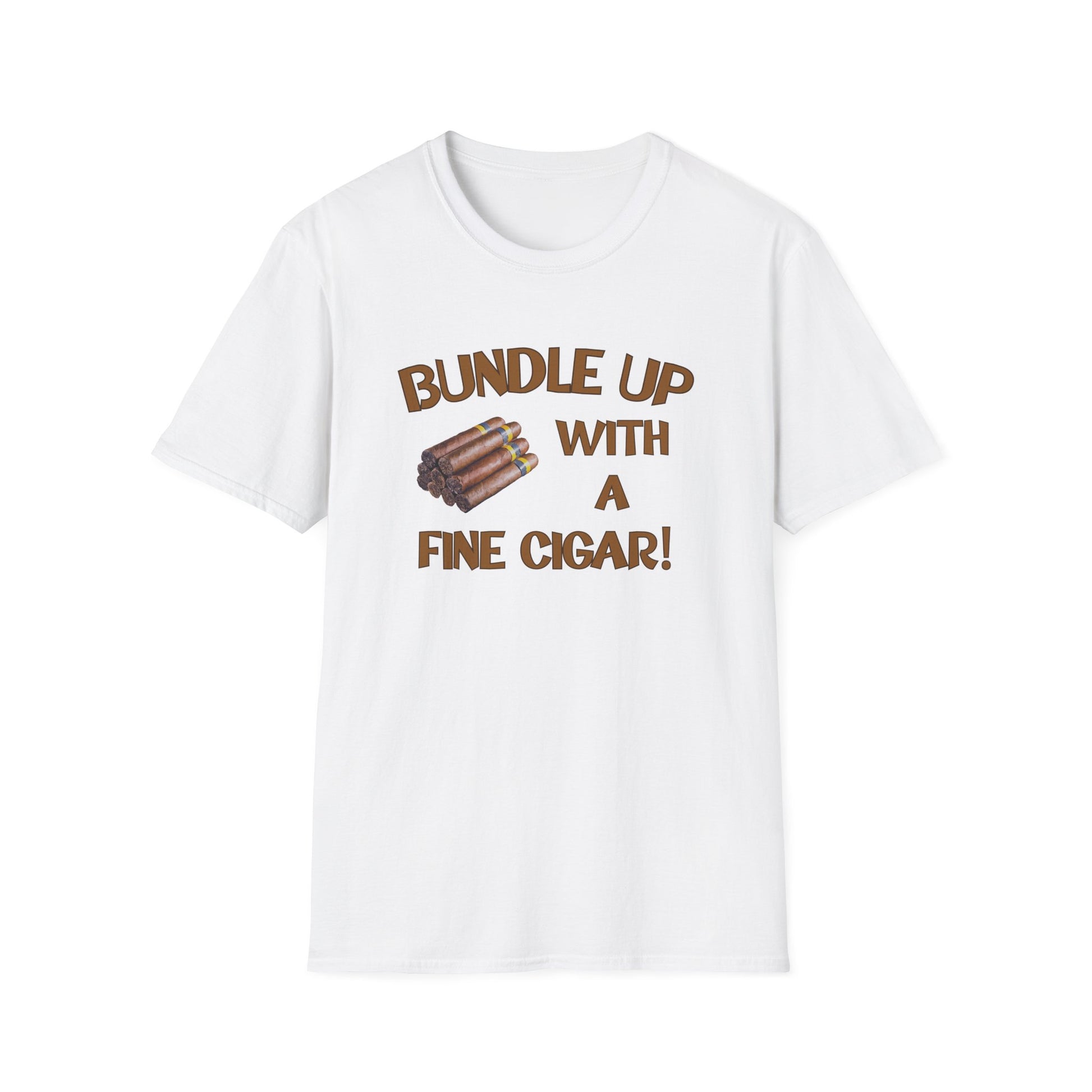 This "Bundle Up With A Fine Cigar" unisex softstyle T-shirt is perfect for those who love to relax in the backyard or the Cigar Bar with a fine smoke! The classic fit and crew neckline offer versatility for any occasion, whether it's formal or semi-formal. Made with 100% ring-spun cotton, this lightweight fabric feels comfortable to wear year-round. Ideal for adults looking for a stylish and cozy tee.