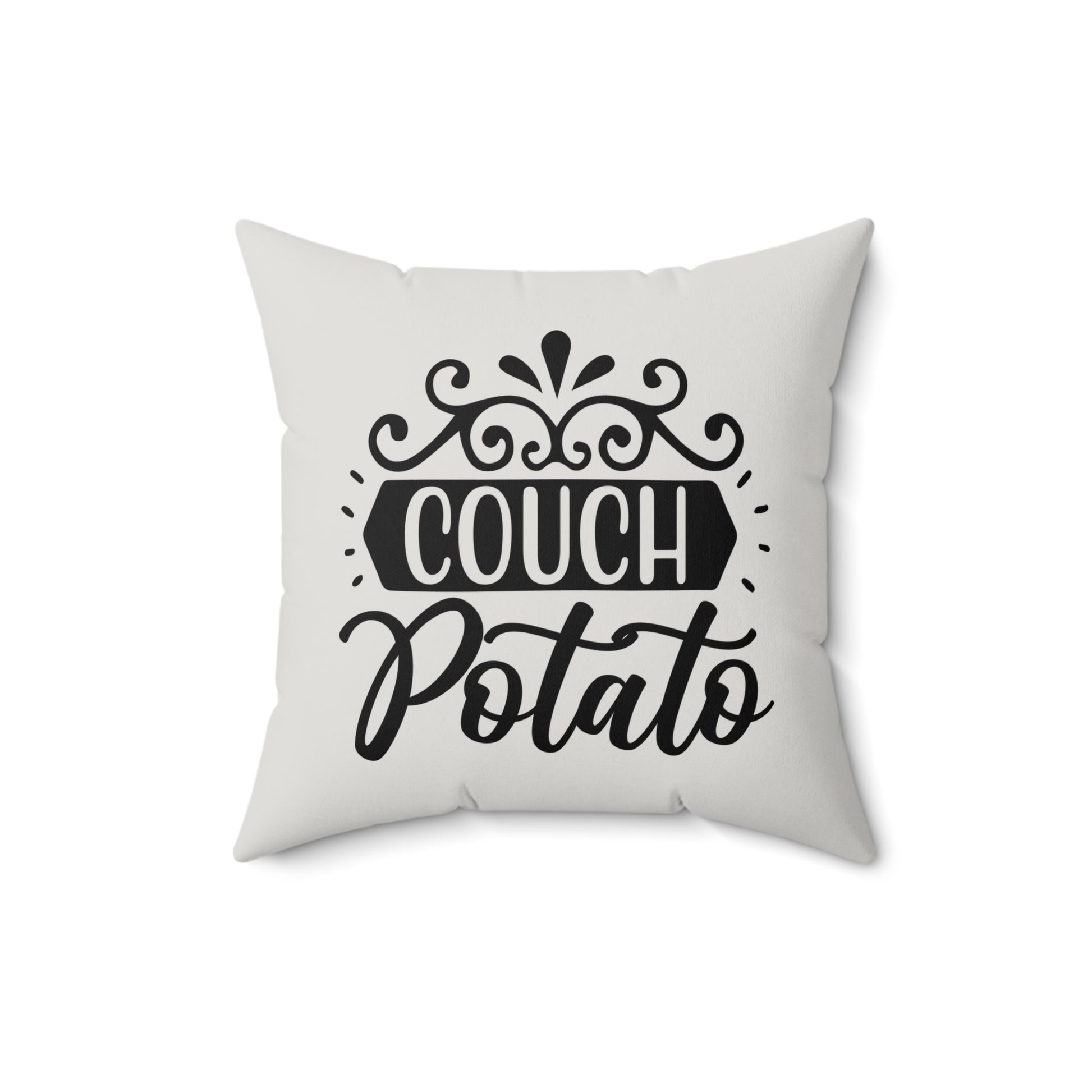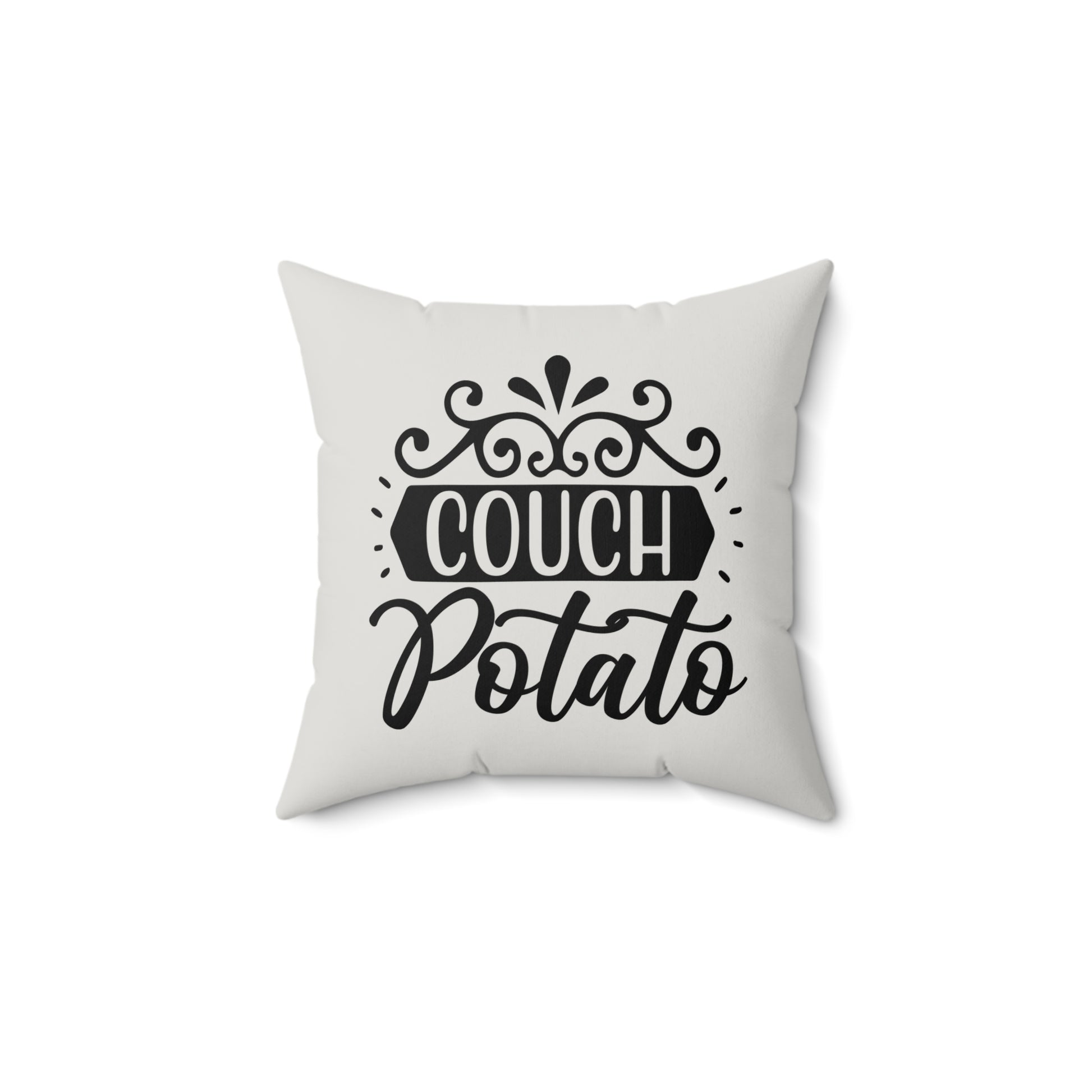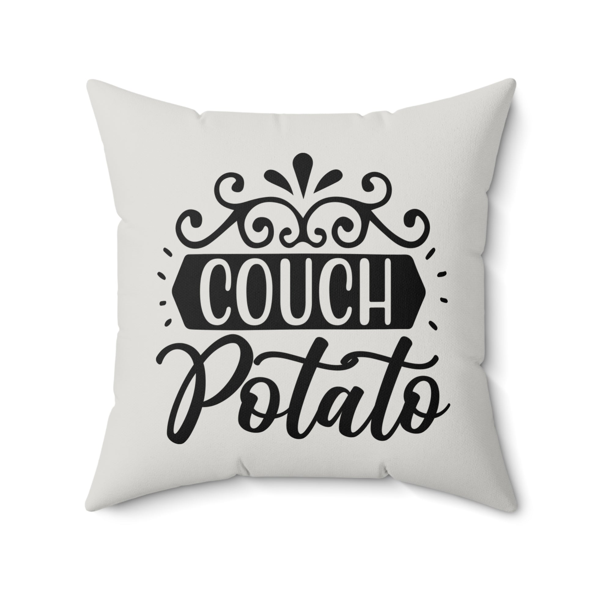 Show your décor humor with this Couch Potato Pillow. Transform your living space with this stylish faux suede square pillow. Its soft texture and chic design offer the perfect touch of comfort and modernity to your home decor. The pillow's unique print adds a playful vibe, making it an eye-catching accent piece. Ideal for cozying up on your couch or adding flair to your bedroom, this pillow is a must-have for anyone looking to elevate their interior style. Perfect for gifting to friends or family during holidays like Christmas, housewarming parties, or just to celebrate everyday moments of relaxation. Embrace the comfort and personality this pillow brings to your life!