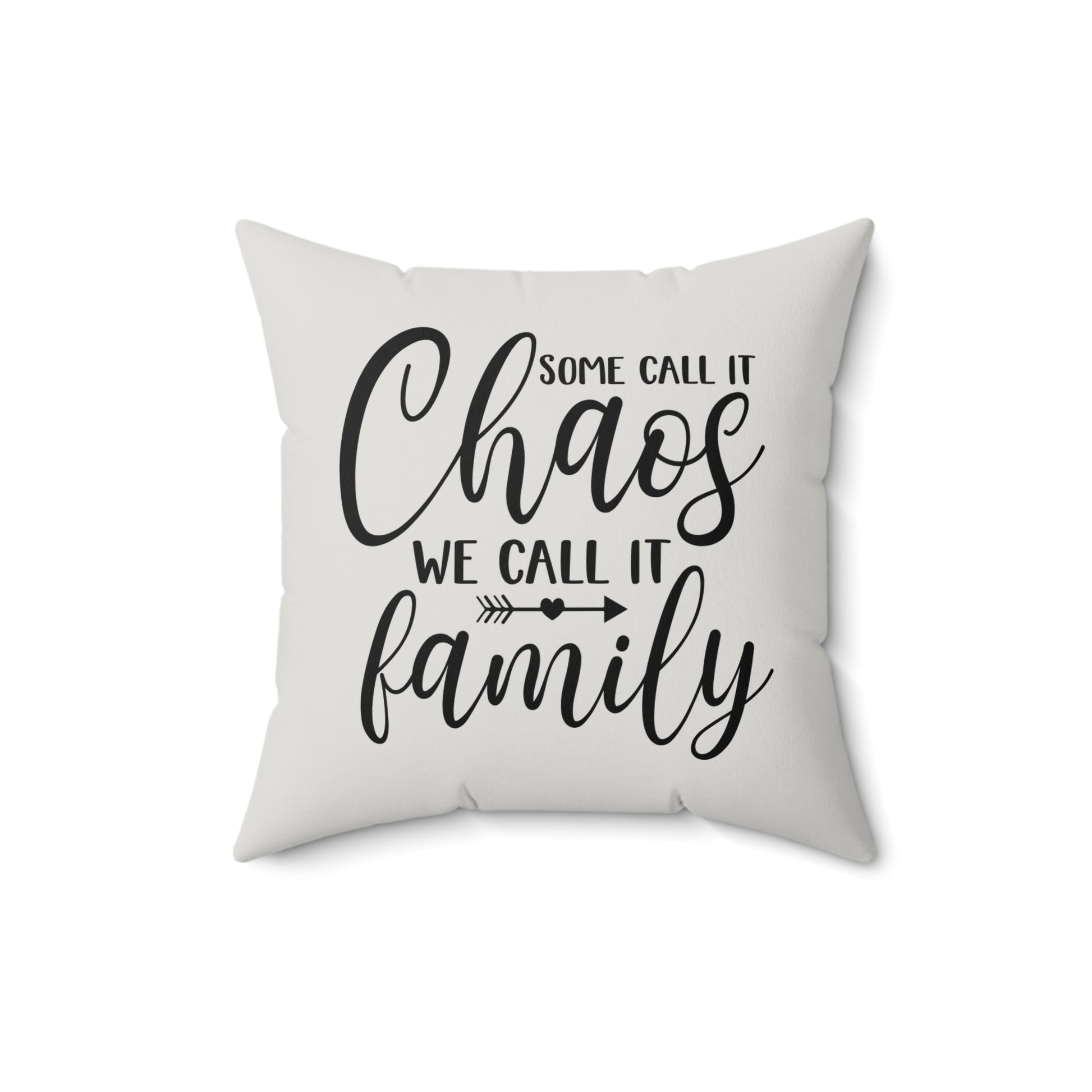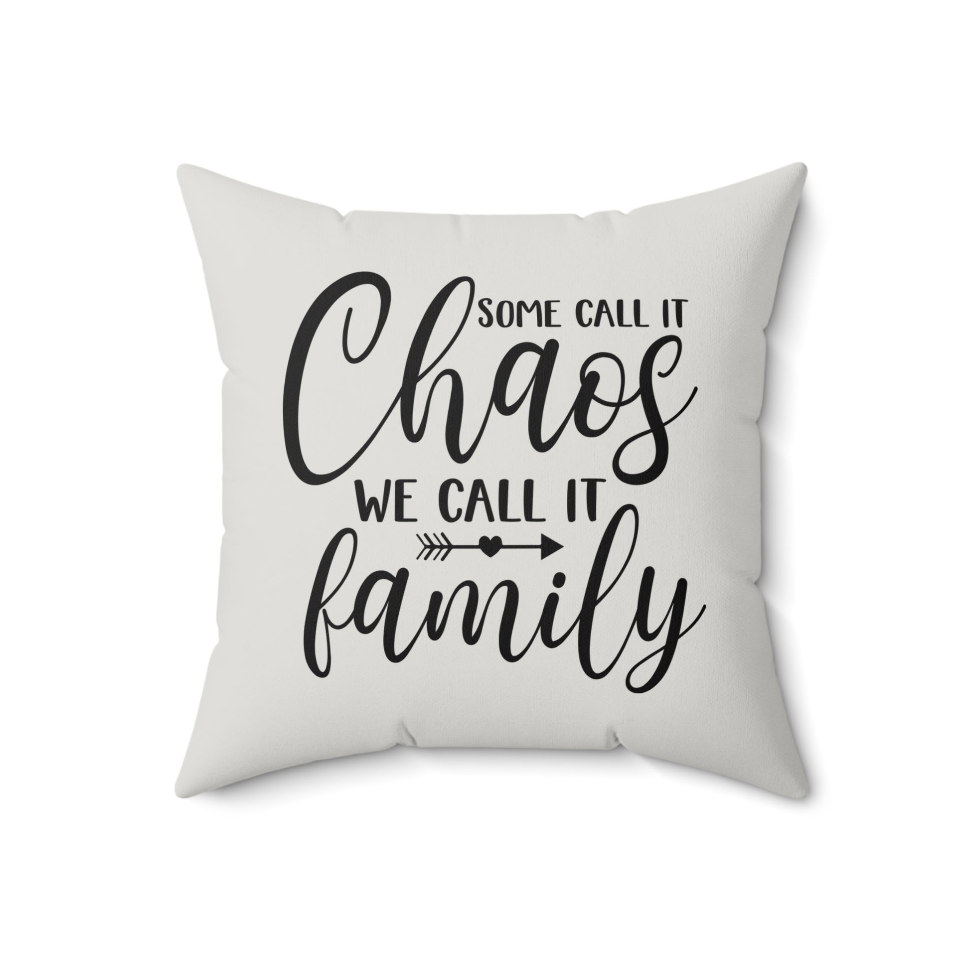 Show your love for family with this Some Call it Chaos We Call It Family Pillow. Transform your living space with this stylish faux suede square pillow. Its soft texture and chic design offer the perfect touch of comfort and modernity to your home decor. The pillow's unique print adds a playful vibe, making it an eye-catching accent piece. Ideal for cozying up on your couch or adding flair to your bedroom, this pillow is a must-have for anyone looking to elevate their interior style. Perfect for gifting to friends or family during holidays like Christmas, housewarming parties, or just to celebrate everyday moments of relaxation. Embrace the comfort and personality this pillow brings to your life!