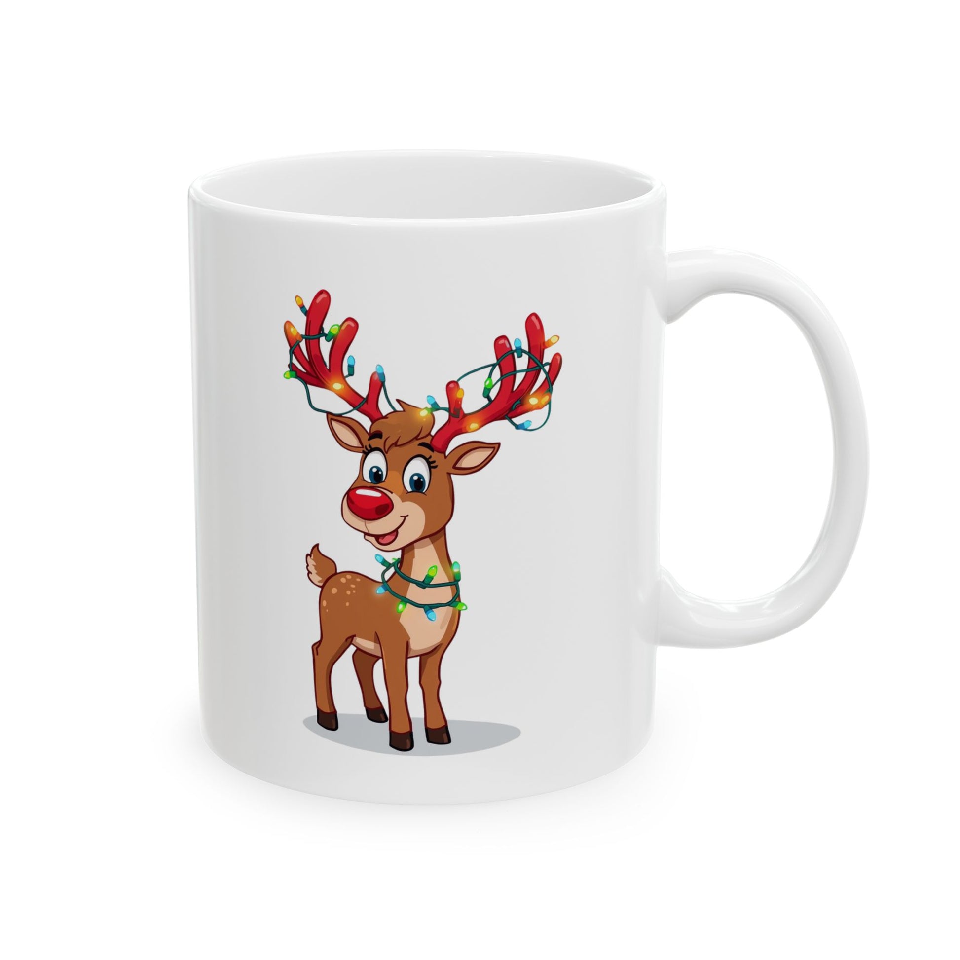 Reindeer Christmas Lights Mug – Cute Holiday Coffee Cup, Festive Reindeer Ceramic Mug, Christmas Gift Idea (11oz/15oz)