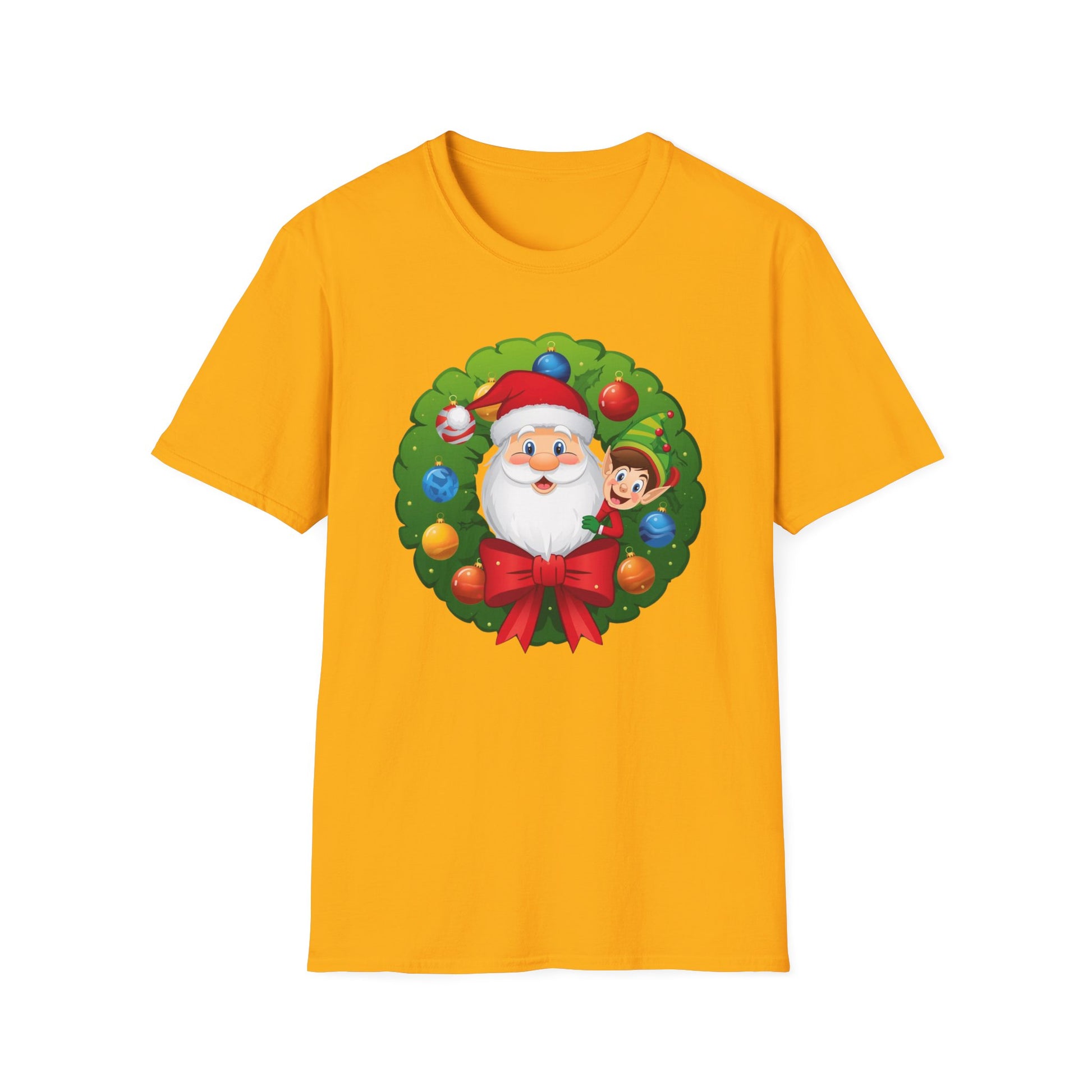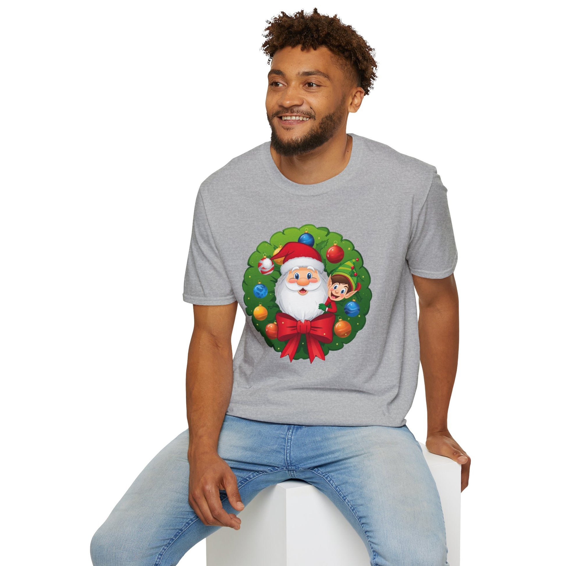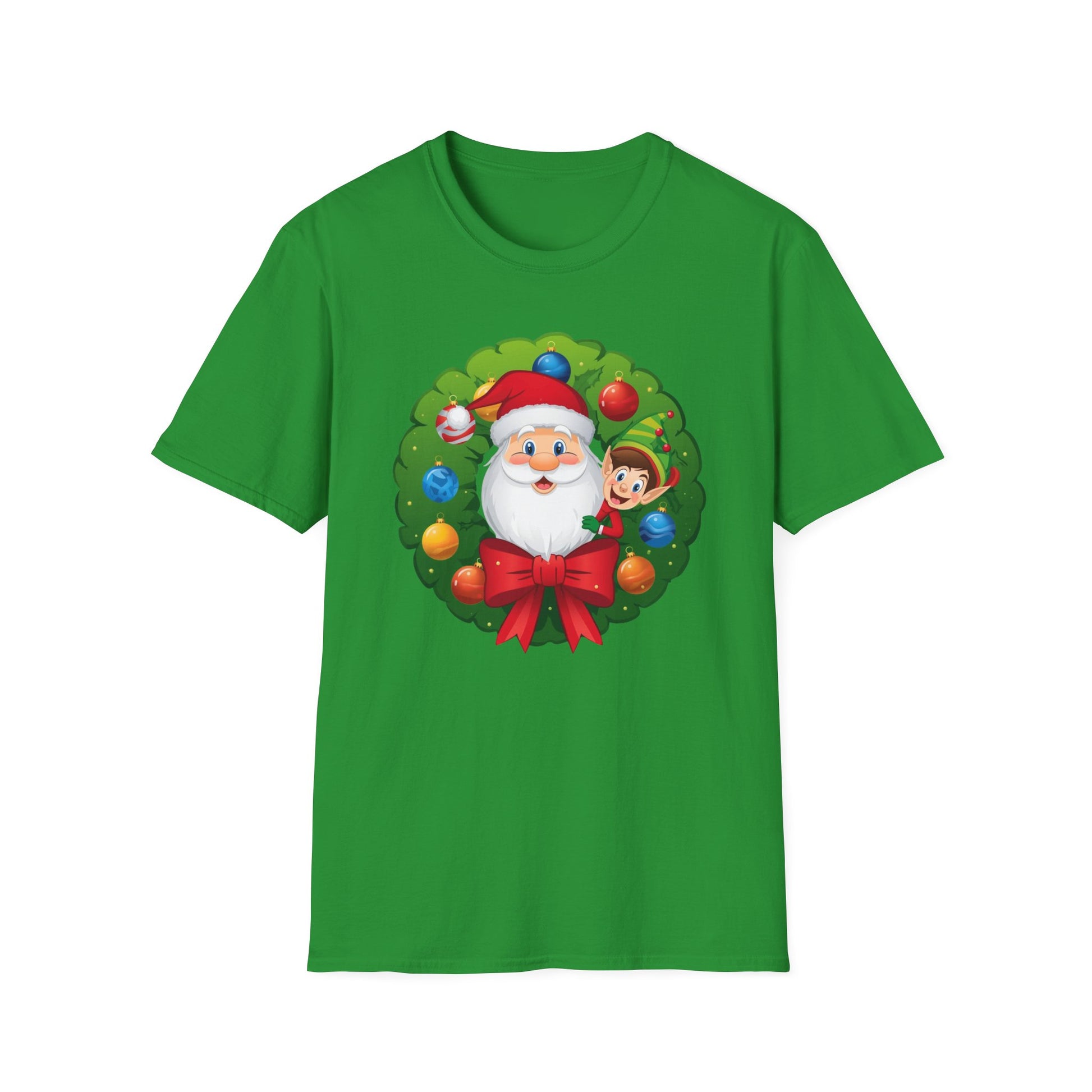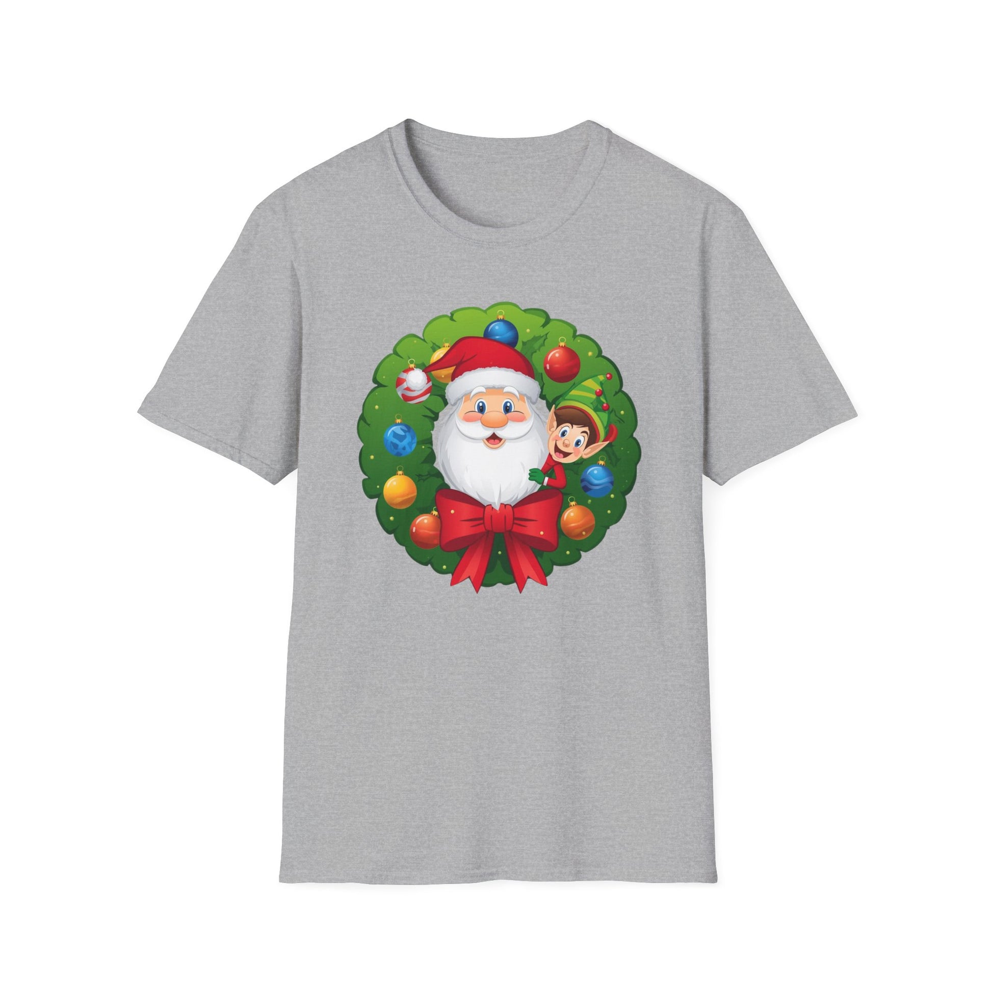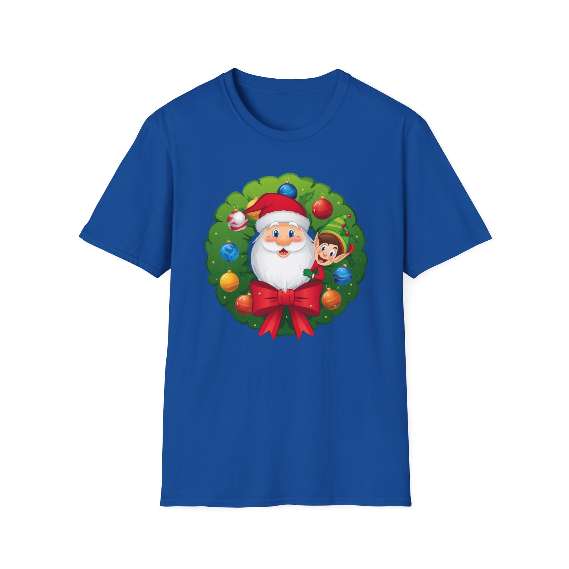 This T-Shirt features Santa and Elf on a Wreath, adding a festive and fun vibe to your wardrobe. Perfect for anyone looking to embrace the holiday spirit and add a touch of whimsy to their outfit. Ideal for Christmas celebrations and winter festivities.