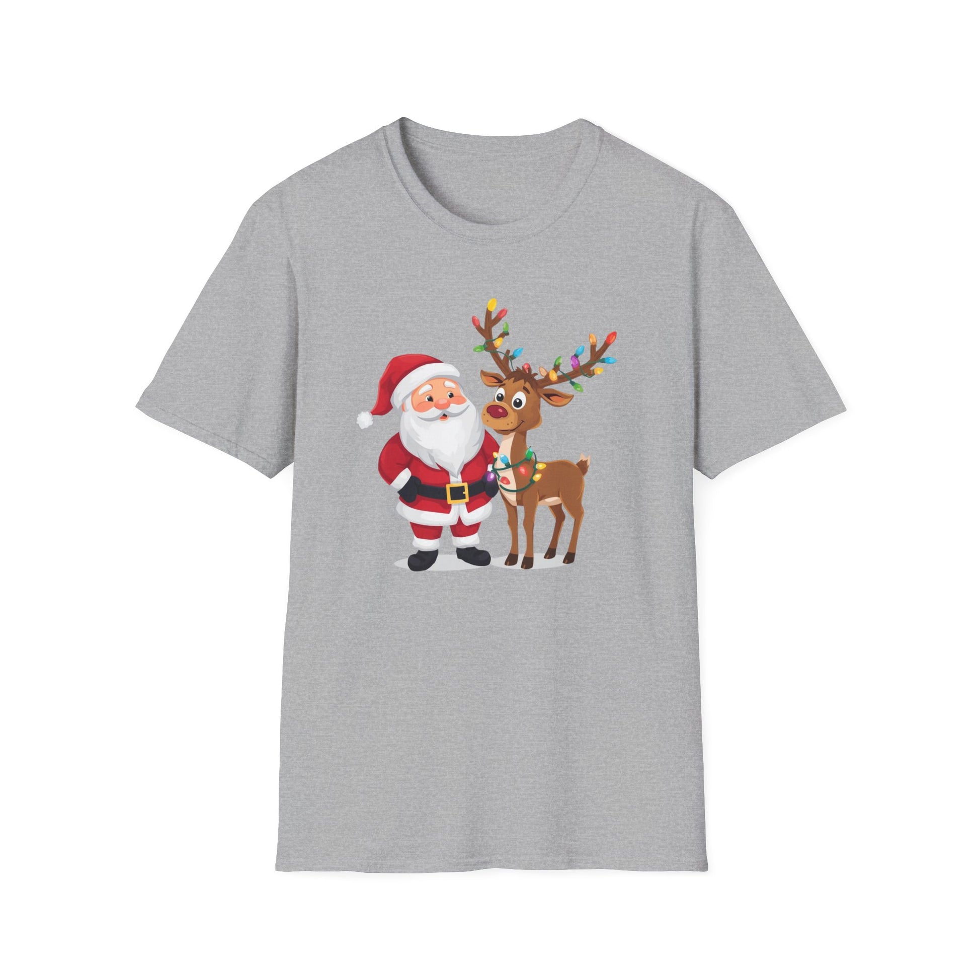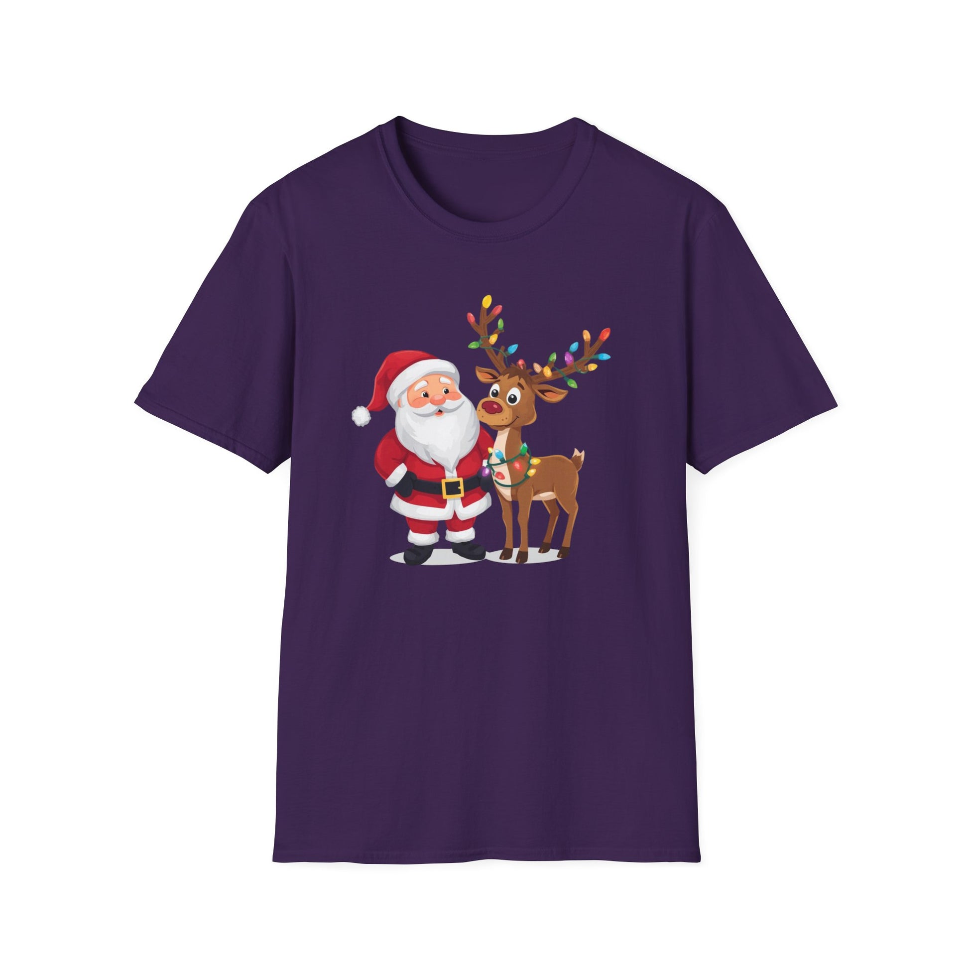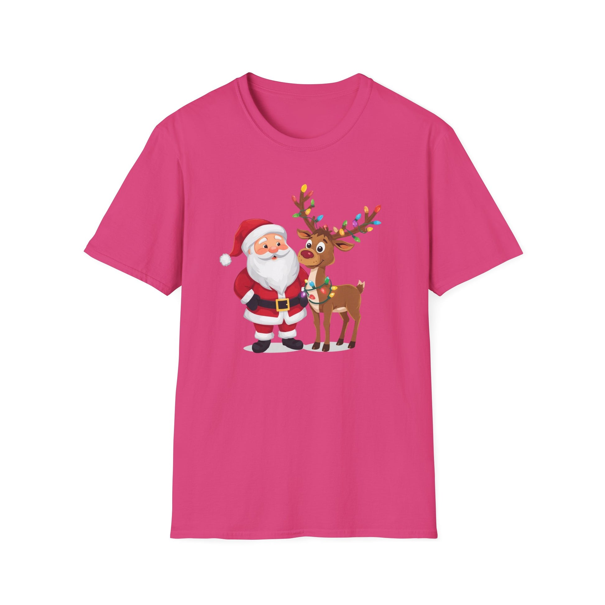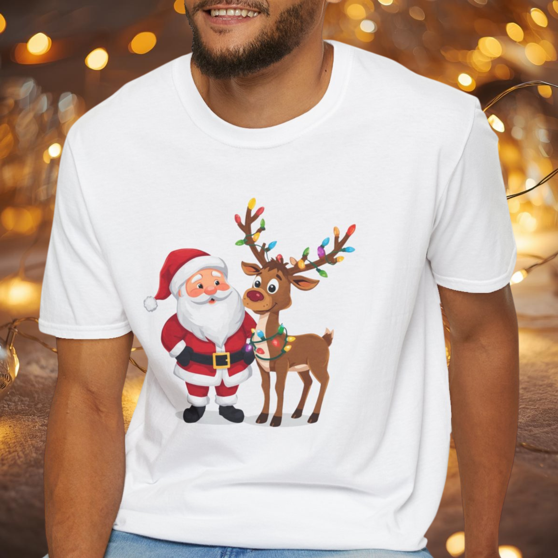 This T-Shirt features Santa and his pal Rudolph, adding a festive and fun vibe to your wardrobe. Perfect for anyone looking to embrace the holiday spirit and add a touch of whimsy to their outfit. Ideal for Christmas celebrations and winter festivities.