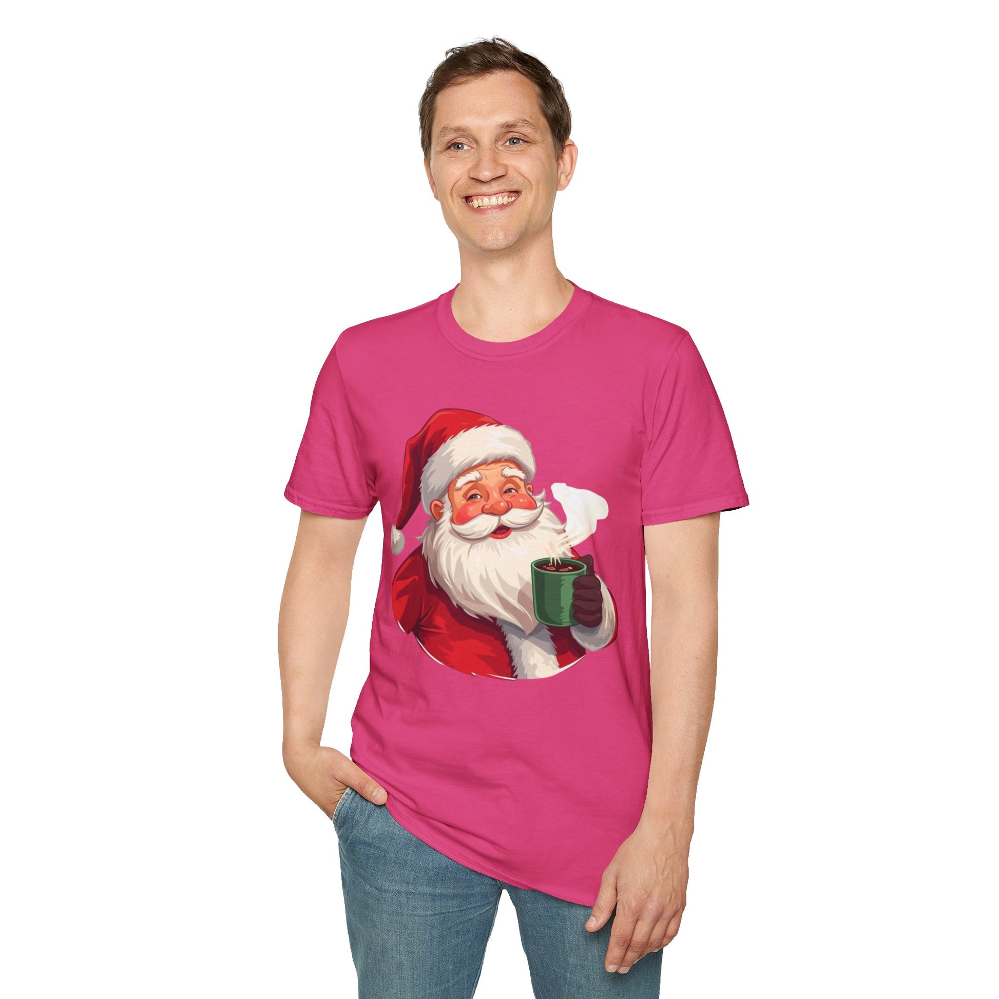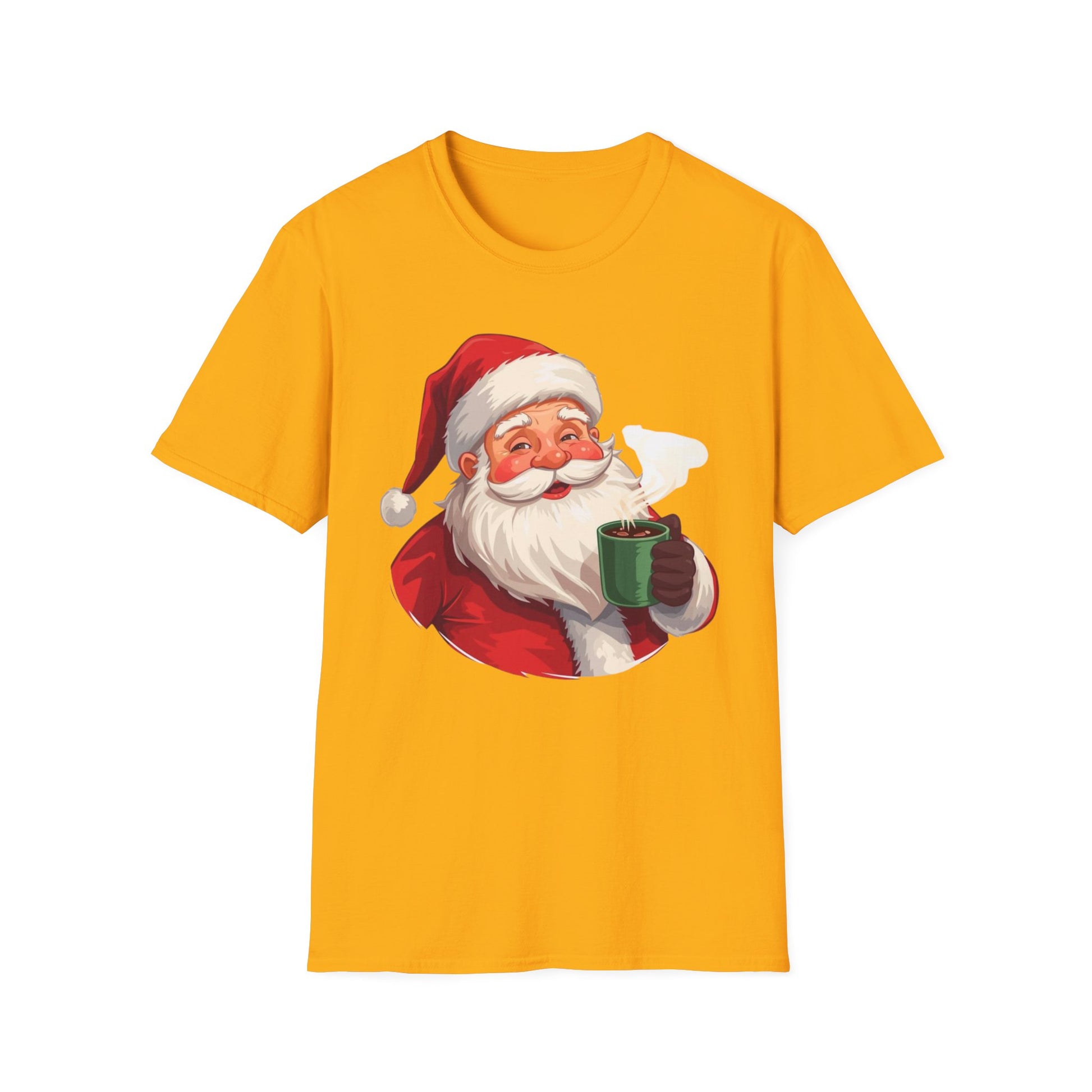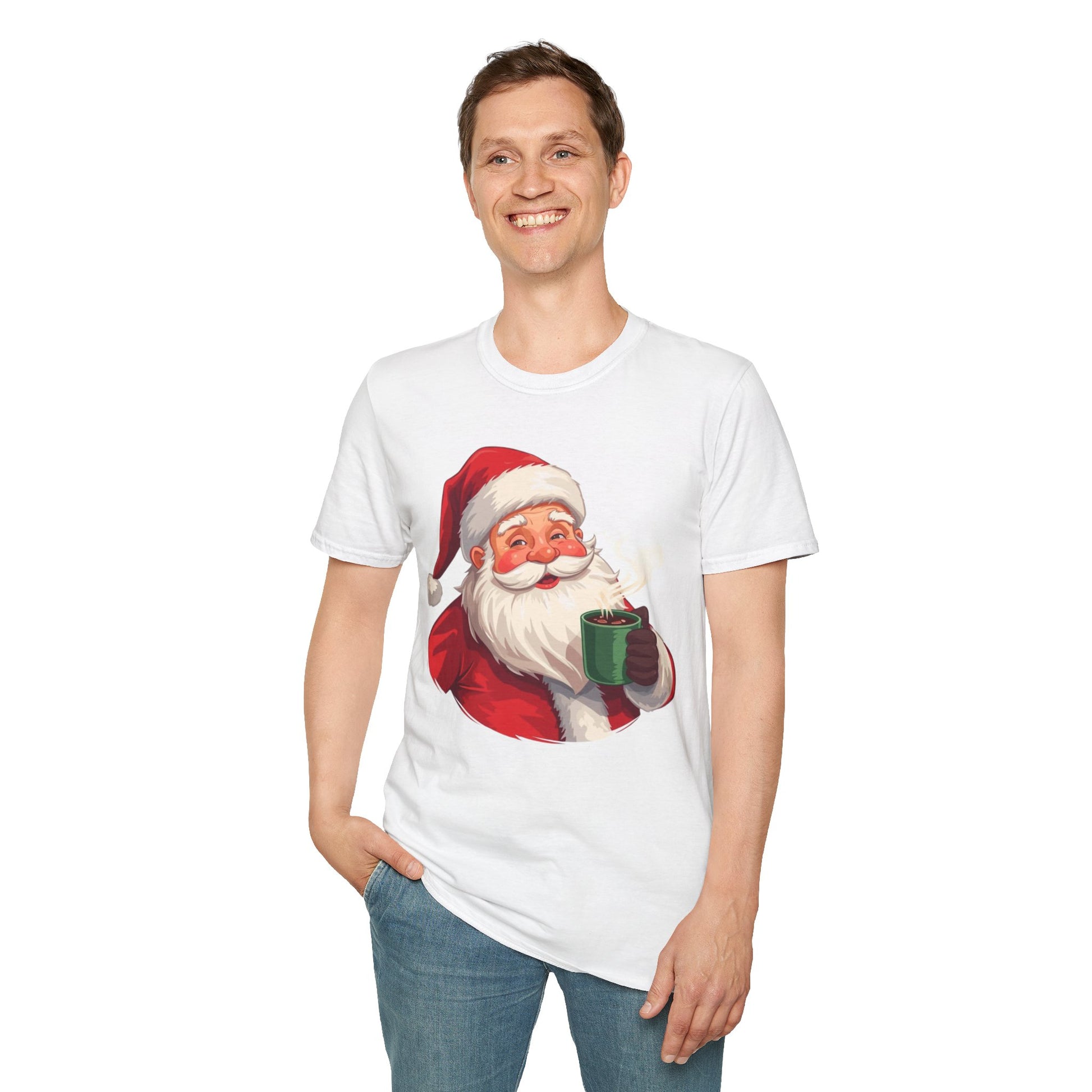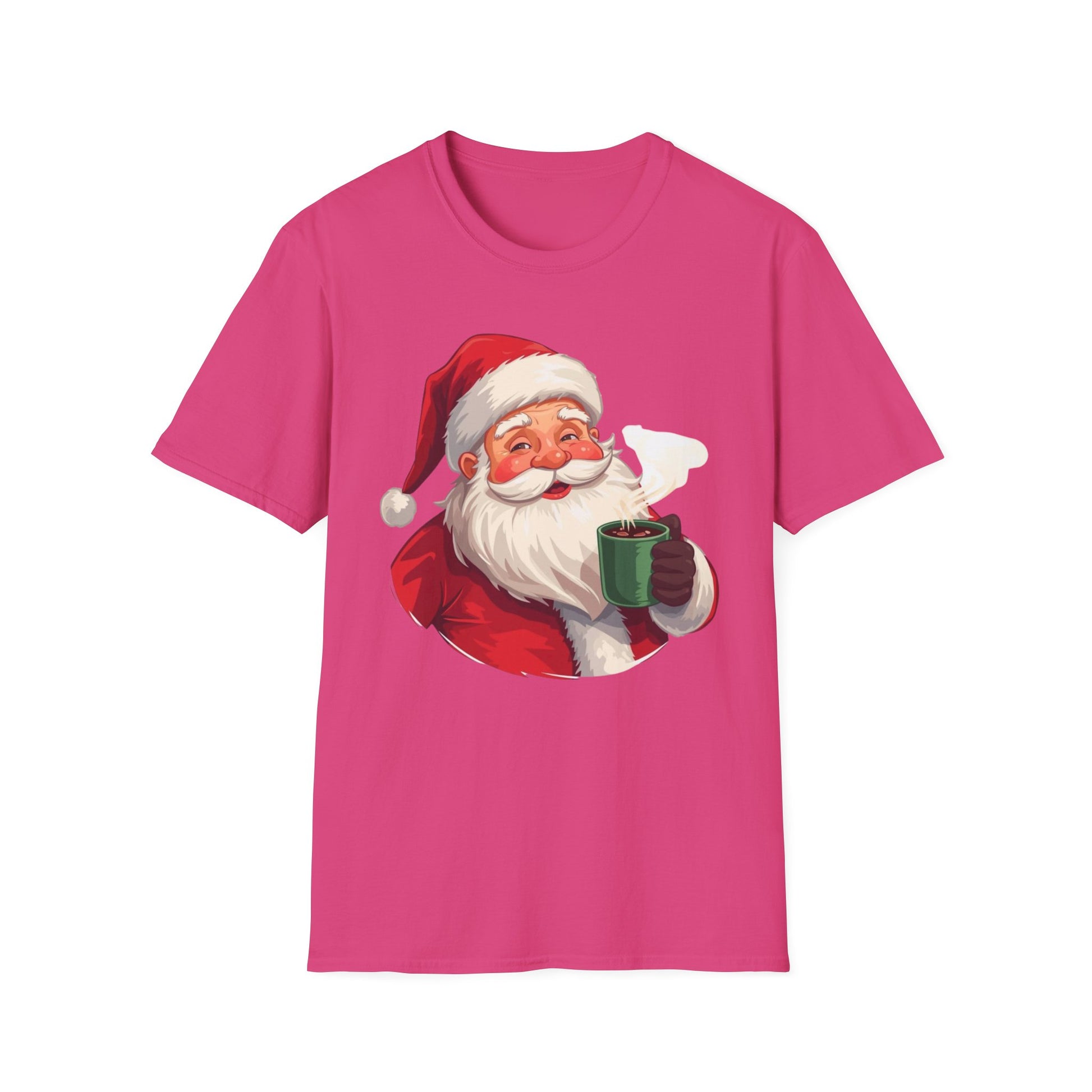 This T-Shirt features Santa enjoying a cup of Hot Chocolate, adding a festive and fun vibe to your wardrobe. Perfect for anyone looking to embrace the holiday spirit and add a touch of whimsy to their outfit. Ideal for Christmas celebrations and winter festivities.